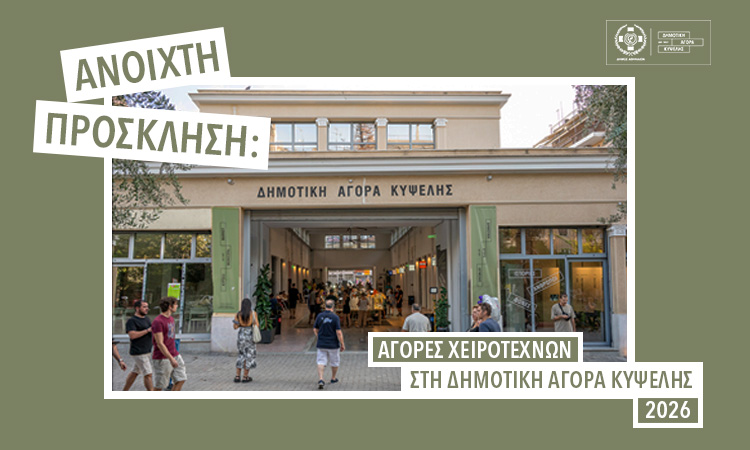 Η Δημοτική Αγορά Κυψέλης απευθύνει ανοιχτή πρόσκληση ενδιαφέροντος σε διοργανωτές αγορών (markets) χειροτεχνών για το έτος 2026. Προσκαλούμε επαγγελματίες διοργανωτές να υποβάλουν τις προτάσεις τους για 7 τετραήμερες αγορές /markets εντός του έτους. 🏛️ Λίγα λόγια για τη Δημοτική Αγορά Κυψέλης Η Δημοτική Αγορά Κυψέλης είναι ένας πολυλειτουργικός χώρος με κοινωνικό πρόσημο, που φιλοξενεί δράσεις γύρω από την τοπική επιχειρηματικότητα, [...]
