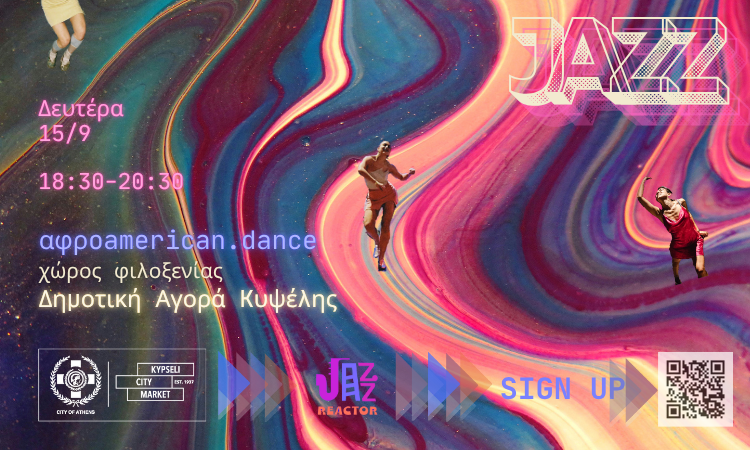 Σας περιμένουμε στη Δημοτική Αγορά Κυψέλης για γνωριστούμε με τον αφροαμερικάνικο χορό & τη χορογραφία σε ένα τραγούδι σουδανέζικης τζαζ με εθιστικό groove και χαλαρό ύφος (Scorpions, 1960s). Εδώ θα μάθουμε βασικές κινήσεις και ρυθμούς, αλλαγές βάρους και μετακίνηση στο χώρο, συμμετοχή του κορμού και χαλάρωση του σώματος πάνω στο beat. Περιλαμβάνεται καλό ζέσταμα και χορευτικός συντονισμός σε κύκλο στην αρχή και αποθεραπεία στο τέλος.
