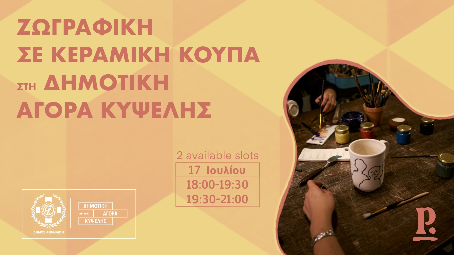 Την Πέμπτη 17/7 ζωγραφίζουμε κούπες στη Δημοτική Αγορά της Κυψέλης, σε δύο διαφορετικά γκρουπ: