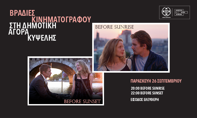 22:00 | Before Sunset, Πριν Το Ηλιοβασίλεμα: O Τζέσι, διακεκριμένος συγγραφέας πλέον, συναντά τη Σελίν στο Παρίσι, με την οποία είχε μια σύντομη ερωτική ιστορία στη Βιέννη πριν 9 χρόνια. Έχοντας ελάχιστο χρόνο στη διάθεσή τους, κάνουν έναν περίπατο-απολογισμό της σχέσης τους και της μέχρι τώρα ζωή τους στην Πόλη του Φωτός.