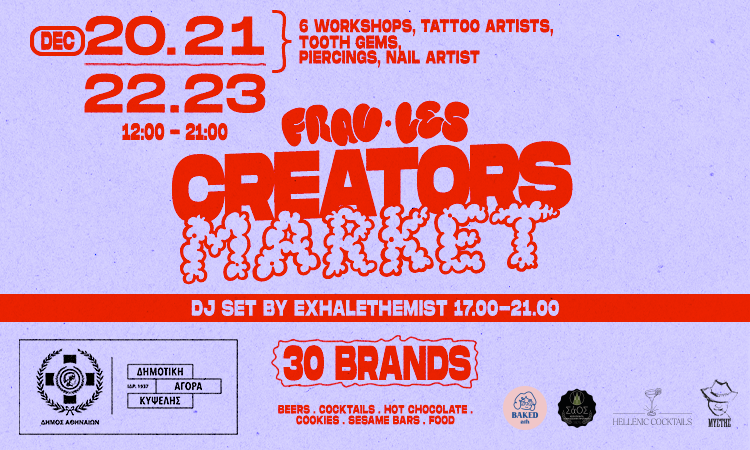 Από τις 20 έως τις 23 Δεκεμβρίου, η Δημοτική Αγορά Κυψέλης υποδέχεται το Χριστουγεννιάτικο Creators’ Market by Frau.les, μια γιορτή αφιερωμένη στα handmade προϊόντα και την εναλλακτική χριστουγεννιάτικη εμπειρία.